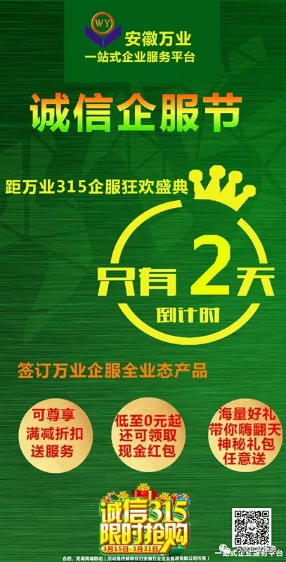 現為了響應315誠信服務消費者的號召,安徽萬業特推出315企服節盛典活動。