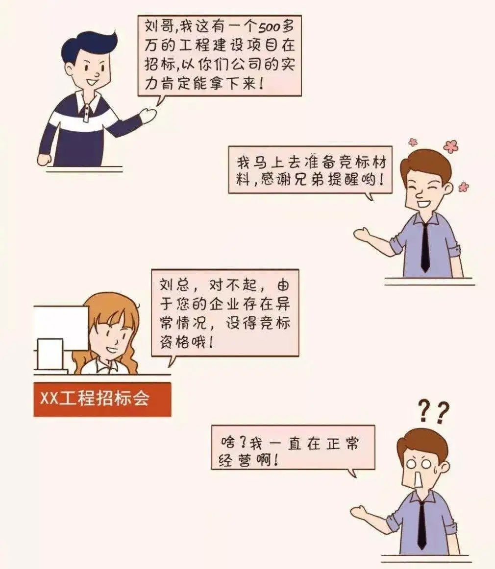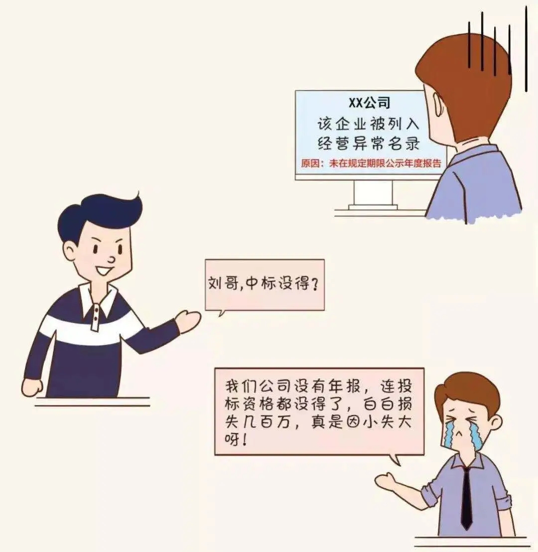 僅剩 7天 02企業合作信用受疑 現在是信用社會,信用對于人和企業來說都至關重要,大家都喜歡和有信用的人交往、合作。 被列入經營異常名錄,你看看誰還找你合作! 03經營活動受限 經營異常名錄信息現在也是 銀行等金融機構貸款、擔保等金融活動的 參考依據 老板 你好,我去年年報忘記報,現在被列入經營異常名錄,本來想著在阿里巴巴注冊一個網店,在網上做點小生意,結果被告知因為企業是經營異常名錄,注冊不了,這可怎么辦呀! 你好,首先應在國家企業信用信息公示系統補報年報,然后再準備好相關材料去當地市場監管部門申請移出哦。 小編 老板 好的,萬萬沒想到沒報年報的后果竟然這么嚴重,嚴重影響了我的經營活動,我真是后悔莫及。 是的,企業被列入經營異常名錄,那就有了信用污點,必須高度重視哦!對了,2019年度的年報馬上也要截止啦,請及時申報哦。 小編 老板 2019年度的年報我們公司馬上準備申報了,經過這次,以后一定不會忘了及時年報! 建議您盡早進行年報,避免因月底網站擁堵或企業自身數據方面準備不充分造成年報延遲。 小編 04列入嚴重違法企業名單 最最最嚴重的后果來啦! 列入經營異常名錄三年還沒有履行信息公示義務的企業,將被列入嚴重違法失信企業名單 企業五年內不能申請移出嚴重違法失信名單,法定代表人、負責人也將受到牽連,三年內不得擔任其他企業的法定代表人、負責人! 企業一站式服務平臺 工商注冊、財稅代賬、審計評估、稅務籌劃、商標專利、資質審批、人才獵頭、人才報名、金融保險、信用評級、法務咨詢、項目申報 公司網站:m.guardq.cn 聯系方式:400-0551-976 合肥總部:安徽省合肥市南一環與馬鞍山路交口恒興廣場A座24樓 分部:合肥市行政服務中心一樓“萬業公司代理窗口”(工商局窗口正對面) 分部:合肥市瑤海區行政服務中心一樓“萬業公司代理窗口”(工商局窗口正對面)