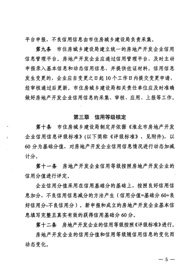 重磅消息!淮北市住房和城鄉建設局官網昨日發布關于印發《淮北市房地產開發企業信用管理辦法》的通知(淮住建規【2022】1號)文件,擬對開發商信用進行評級,并根據開發企業信用不同等級實施差異化管理,為規范房地產開發經營行為,促進房地產業持續健康穩定發展提供政策指引。具體內容如下: