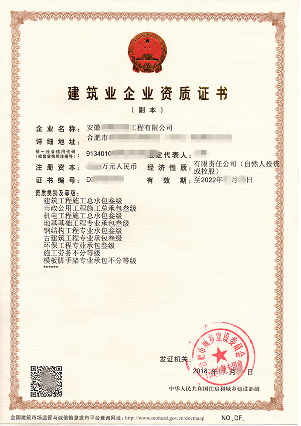 名稱:市政三+機電三+建筑三+鋼結構三+古建筑三+環保三+施工勞務資質+模板腳手架承包